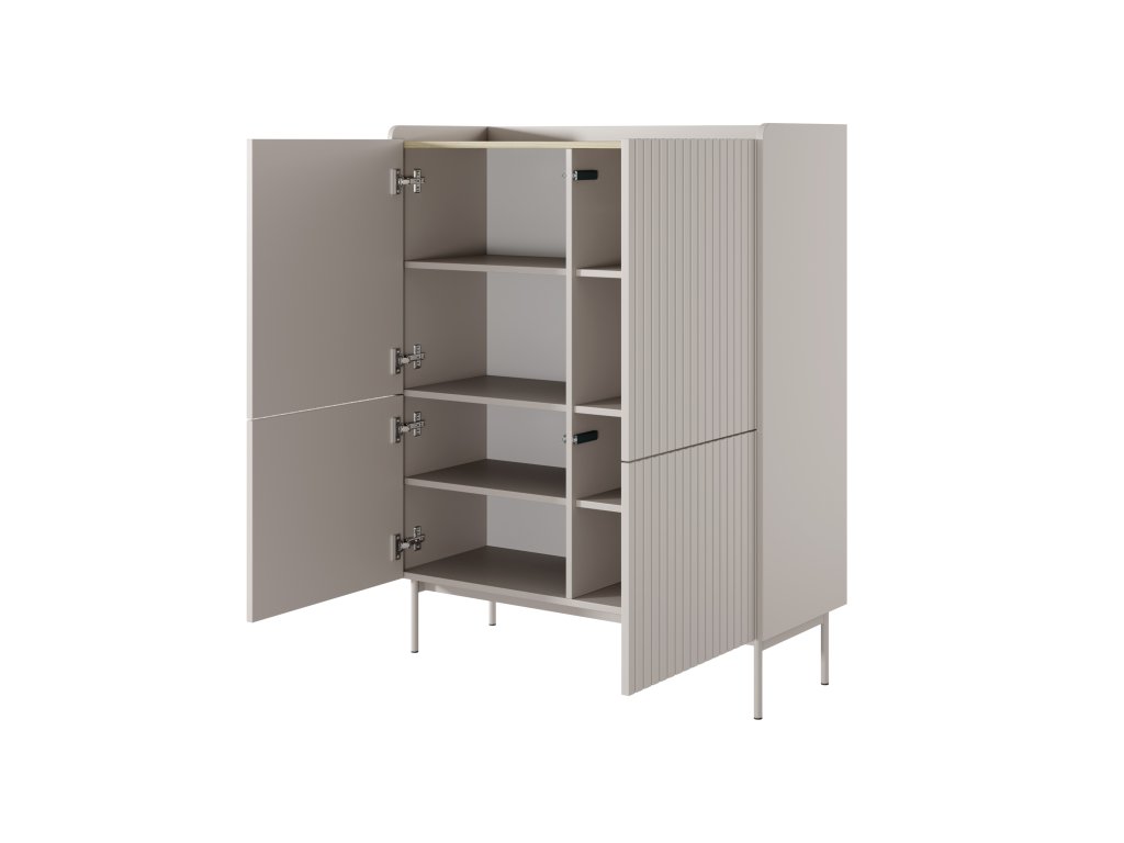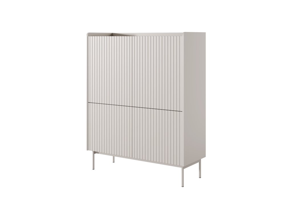 Do tohto trendu dokonale zapadá súprava Wandy s drážkovanými čelami. Kolekcia dokonale kombinuje tlmené, prirodzené farby béžovej a svetlého dreva. Jedinečný štýl nábytku zdôrazňujú zaoblené boky a znížená doska stola vo farbe dub scandi. Harmonickým doplnkom sú béžové kovové nohy, ktoré dodávajú kolekcii ľahkosť. Tento nábytok je symetrický a minimalistický a zároveň originálny a moderný.
