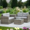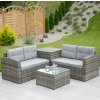 Súprava záhradného nábytku JUDITH , v šedej farbe, je vyrobená z vysoko kvalitného polyratanu - výpletu, ktorý sa podobá prírodnému ratanu, ale výrazne ho prevyšuje z hľadiska mechanickej pevnosti a odolnosti voči poveternostným vplyvom, ako je vlhkosť, špina a UV žiarenie.