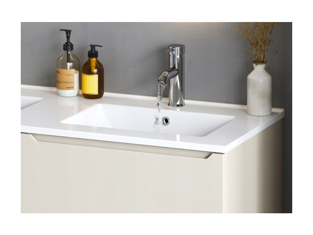 Čistý a moderný dizajn: Umývadlo je určené na zapustenie do nábytku (skrinky), čo vytvára jednoliaty, harmonický celok a uľahčuje údržbu okolia umývadla.