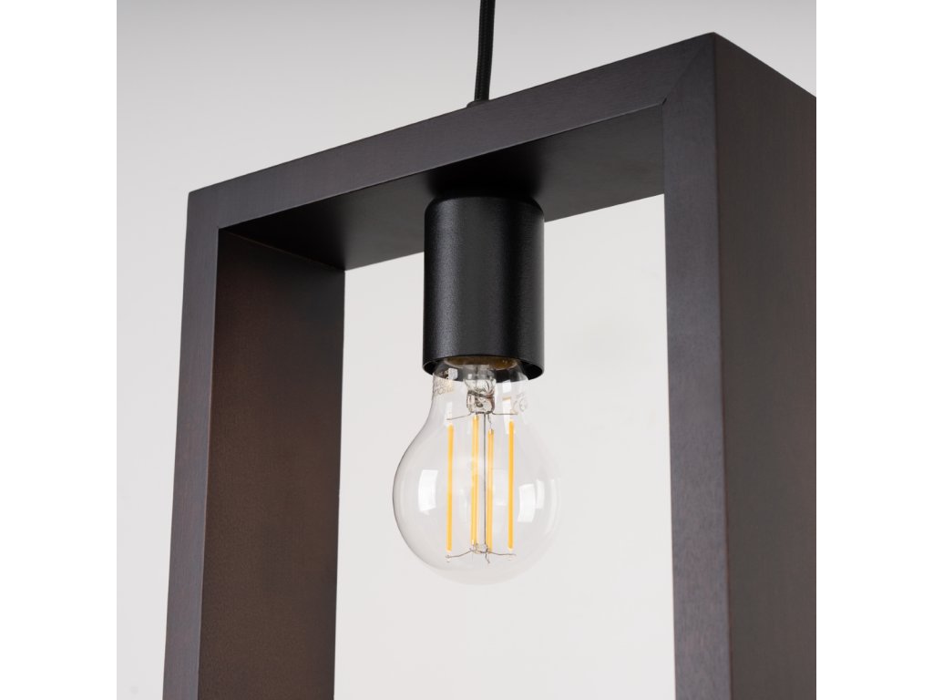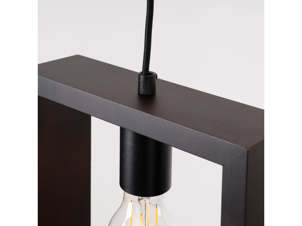 Toto štýlové závesné svietidlo spája jednoduchosť a modernosť a má štvorcový drevený rám s jednou žiarovkou zavesenou uprostred. Dokonale sa hodí do interiérov v škandinávskom štýle alebo ako akcent v eklektickejších priestoroch. Jednoduchosť dizajnu umožňuje použitie lampy v rôznych miestnostiach v celom dome.