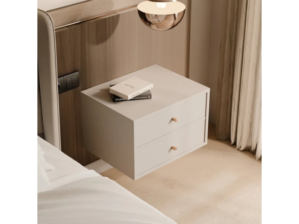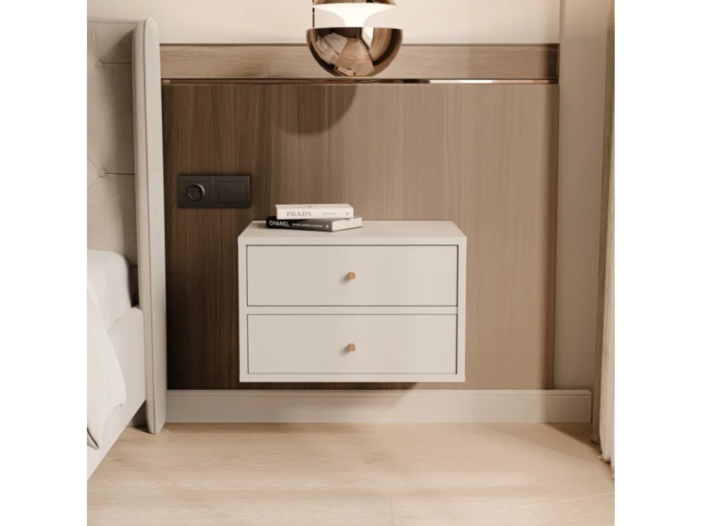 Nočný stolík RAY so zásuvkami je moderný a funkčný kus nábytku, ktorý ponúka praktický úložný priestor a zároveň si zachováva elegantný, minimalistický dizajn, ideálny do každej spálne.