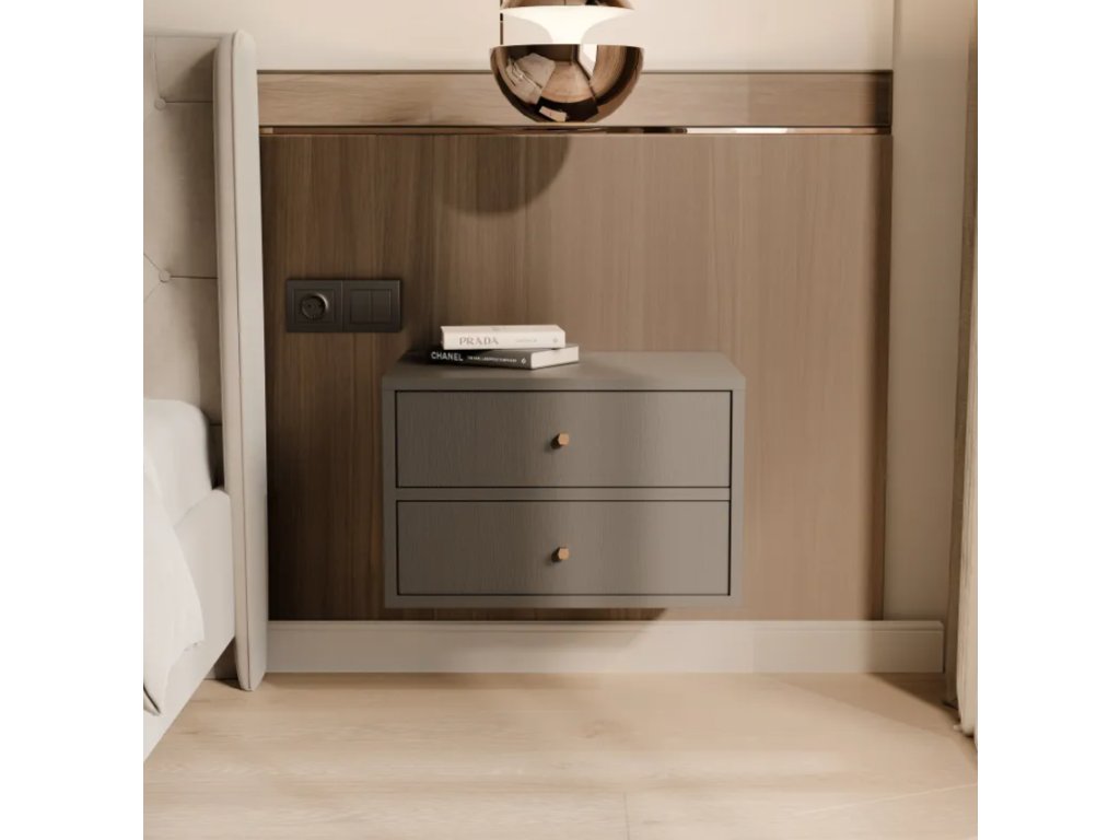 Nočný stolík RAY so zásuvkami je moderný a funkčný kus nábytku, ktorý ponúka praktický úložný priestor a zároveň si zachováva elegantný, minimalistický dizajn, ideálny do každej spálne.