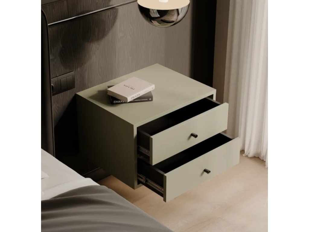 Tento model je vybavený dvoma priestrannými zásuvkami , ktoré ponúkajú dostatok miesta na potrebné veci – od kníh a doplnkov až po malé osobné predmety. Štýlové kovové úchytky zaisťujú jednoduché otváranie , čím dodávajú celkovému dizajnu eleganciu a decentný nádych.